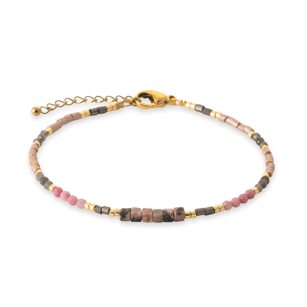 Chaque bracelet est composé de pierres naturelles, sélectionnées avec soin. De légères variations de couleur, de forme ou de motifs peuvent apparaître, témoignant de l’authenticité de la rhodonite et rendant chaque pièce véritablement unique.